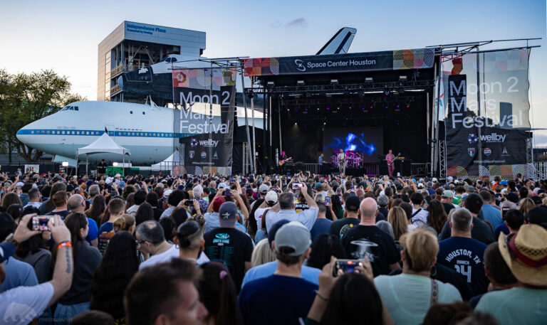 311 // Live @ Space Center Houston // 3.14.26 CONCERT REVIEWS FEATURED FESTIVALS MUSIC by Ommar Ortuvia - March 17, 2026 Article & Photos by Ommar Ortuvia Houston, TX — To think of Houston without NASA is like thinking of Italian food without pasta. NASA’s Mission Control and space exploration are so deeply woven into the city’s DNA that “Space City” has become more than a nickname – it’s an identity that extends from the ill-quoted “Houston, we have a problem” to the names of its sports teams. At Space Center Houston (NASA’s public visitor center and museum) the Moon 2 Mars festival (whose full official name is Moon 2 Mars Festival presented by Wellby Financial) took place on the weekend of March 13-14, where visitors could get hands on with many STEM and space exploration activities and displays during the day, and culminating in a high-energy outdoor concert at night. On Saturday evening, 311 closed the festival with their alternative, funky, reggae-esque brand of rock. Since forming in Omaha, Nebraska, in 1988, 311 has built a strong connection and a fiercely loyal following through decades of constant touring and a prolific discography. Fresh off their “311 Day” celebration in Las Vegas on March 7-8, the band arrived in Houston ready to maintain that momentum. The show began with a cinematic flourish; at 7:00 PM, the PA roared to life with Also sprach Zarathustra while the stage screen flashed iconic clips from Stanley Kubrick’s 1968 futuristic space opus 2001: A Space Odyssey. This introduction provided a unique sensorial and musical experience that only Houston can provide; the band’s frequent use of space and planetary imagery and futuristic lyrics paired perfectly with the backdrop of Independence Plaza, where a replica of the space shuttle Independence sits atop its NASA 905 Boeing 747 carrier. Once the band took the stage, they launched straight into the opener “Beautiful Disaster,” followed quickly by “Freeze Time” and the fan-favorite “All Mixed Up.” Afterwards, lead singer Nick Hexum addressed the crowd stating they wanted to play space-themed songs and introduced Starshines. The band continued moving through a hit-heavy catalog including their groovy reggae-flavored cover of The Cure’s “Lovesong,” “Come Original,” “Beyond the Gray Sky,” and the mellow vibrations of “Champagne” and “Amber.” They ensured long-time fans got exactly what they came for: bassist P-Nut’s signature solo featuring his glowing fret markers, and drummer Chad Sexton’s thunderous solo that segued into the band’s iconic Batucada-style of collective drumming. After closing the main set with “Creatures (For a While),” the band returned for a high-energy encore. They reached back to their 1993 major release debut Music for “Feels So Good,” touched on their 2019 album Voyager with “Don’t You Worry,” and finally closed the night with their massive hit, “Down.” Over the course of 90 minutes, 311 bridged 36 years of musical history. While the setlist leaned heavily on their mid-90s to mid-00s prime, they did play a few tracks from their recent releases but most notably songs their 2024 release Full Bloom were absent. All in all, the band put on a great show, and the Moon 2 Mars Festival offered a one-of-a-kind experience where hardcore fans and families alike could celebrate this great band under the stars, spaceships, and rockets. By the time the final note rang out, one thing was certain: Houston, we have no problems. You can access Houston Space Center’s Moon 2 Mars website for more information at https://spacecenter.org/moon2marsfestival